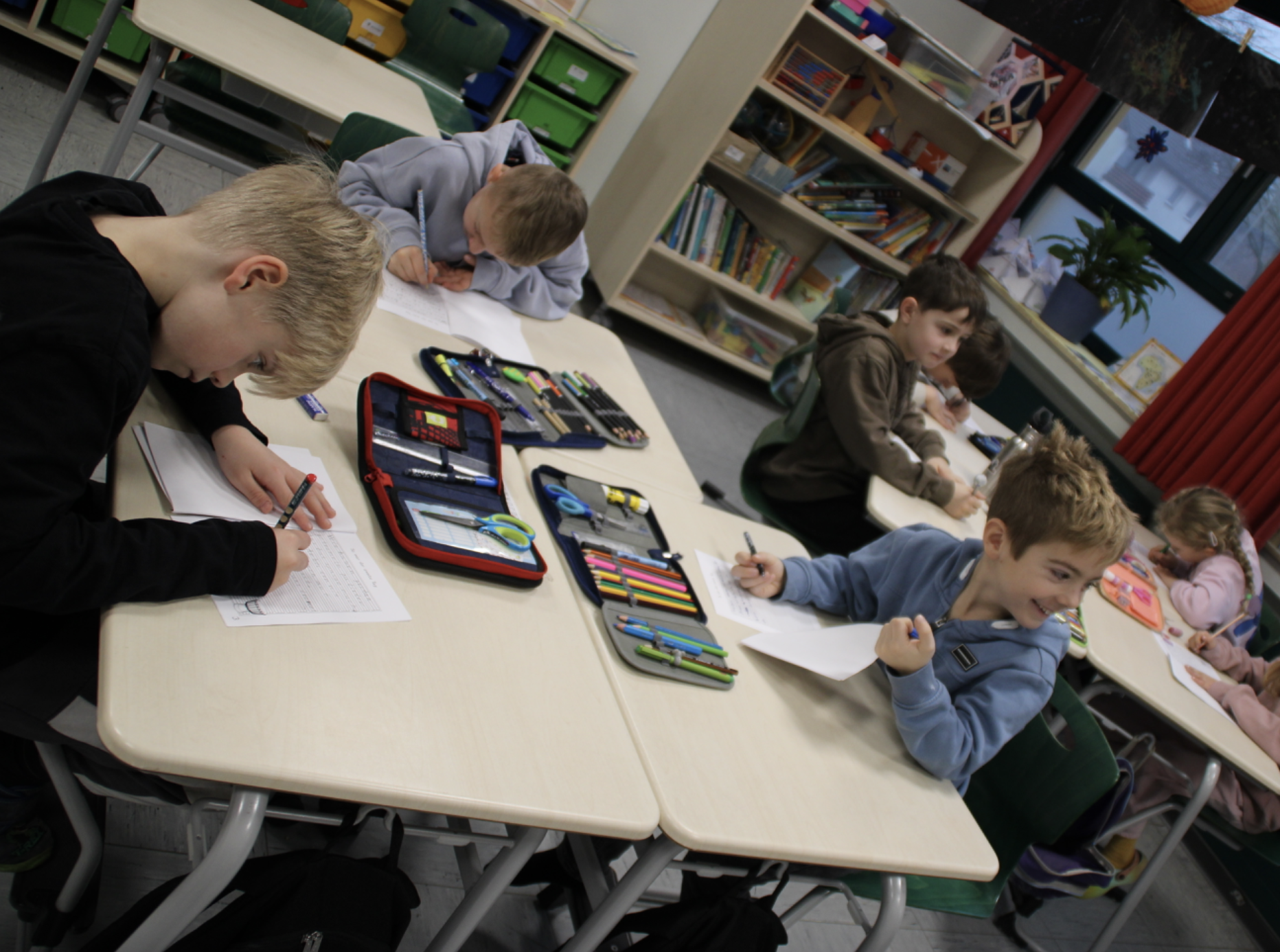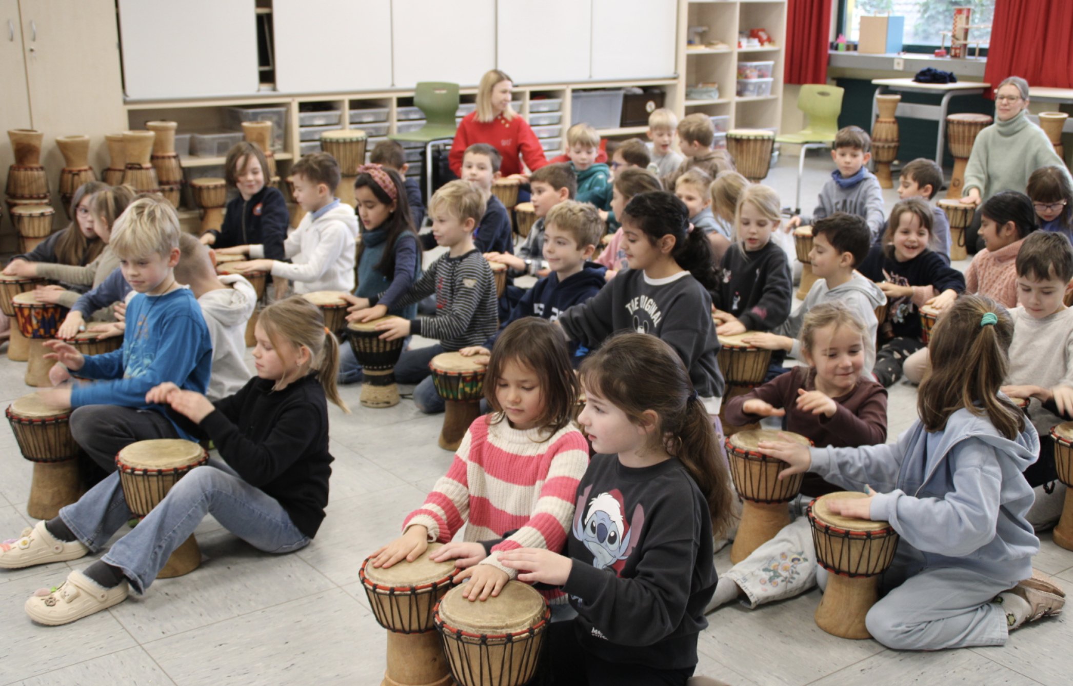 Neben dem gemeinsamen Trommeln und Tanzen wird in der Klasse auch noch eine Menge zu Afrika gelernt. Es ist spannend zu erfahren, wie es in den fernen Ländern aussieht, welche Tiere und Pflanzen es da gibt und wie die Kinder dort lernen. Gebastelt wird auch noch, denn schließlich werden die Maulwürfe für die Aufführung zu Giraffen!