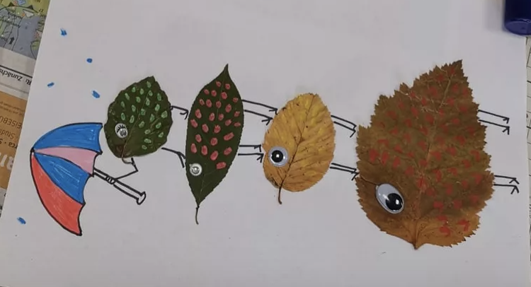 Mit Wackelaugen und Filzstiften lässt sich so einiges aus unseren gesammelten Herbstblättern zaubern.